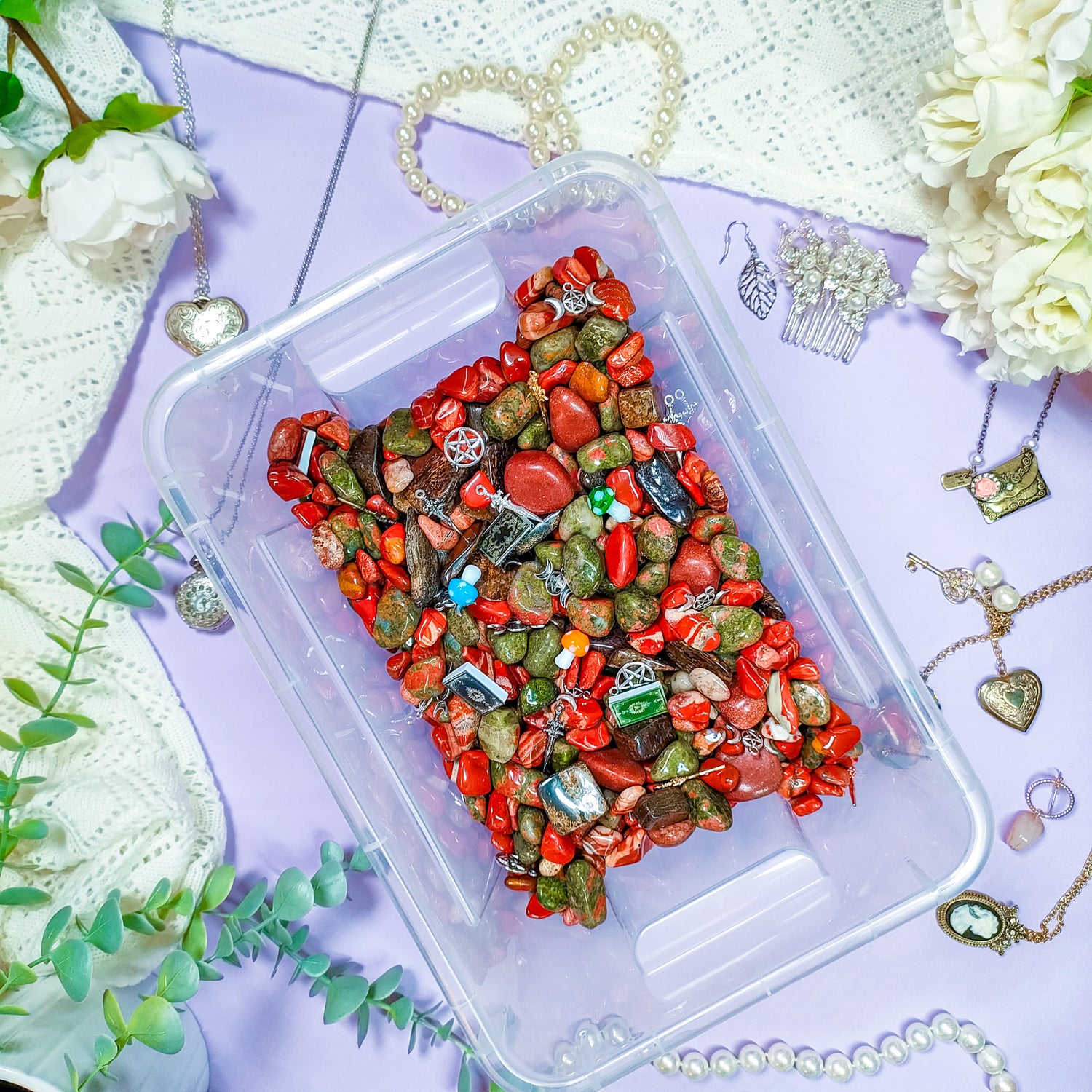 Valikoimamme eri kokoisista rumpuhiotuista kristalleista. Kristallien koko, muoto ja väri voivat hieman...