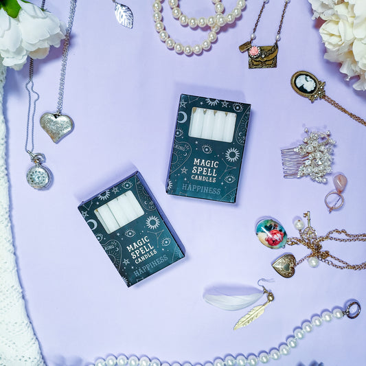 LoppuunmyytyLoitsukynttilät onnellisuus valkoinen