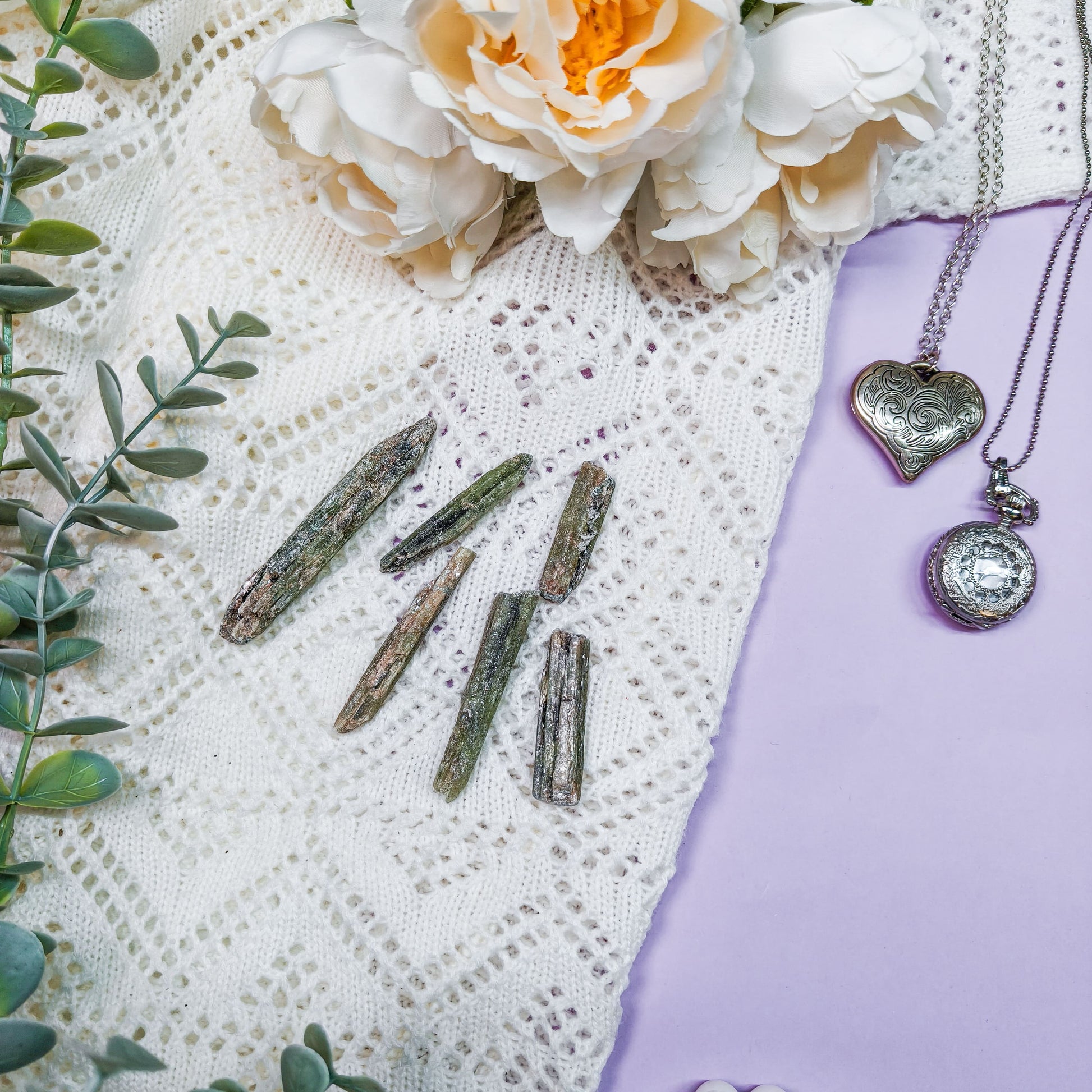 Avainsanat: kyaniitti, vihreä, raaka, kristalli, voimakivi, energiakivi
