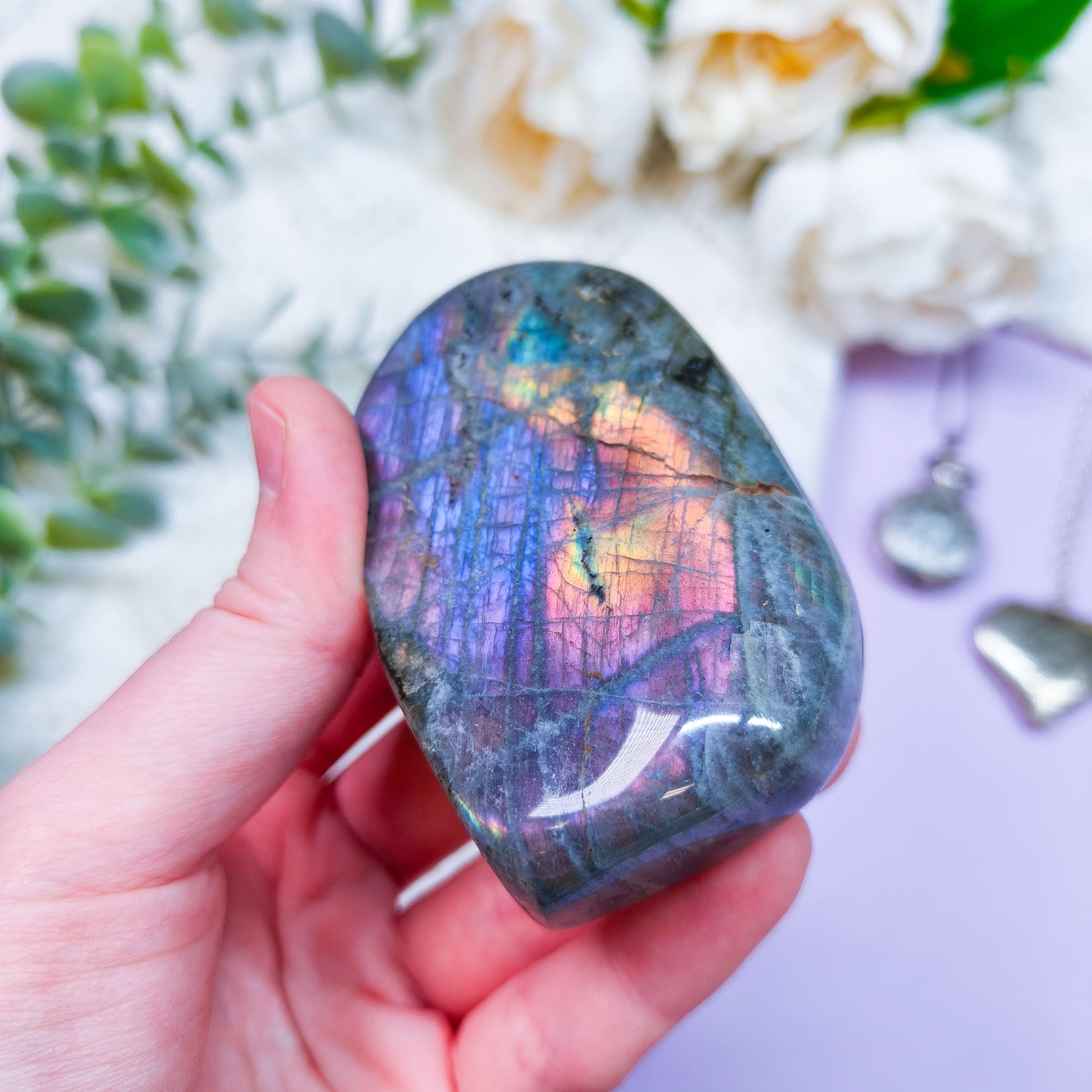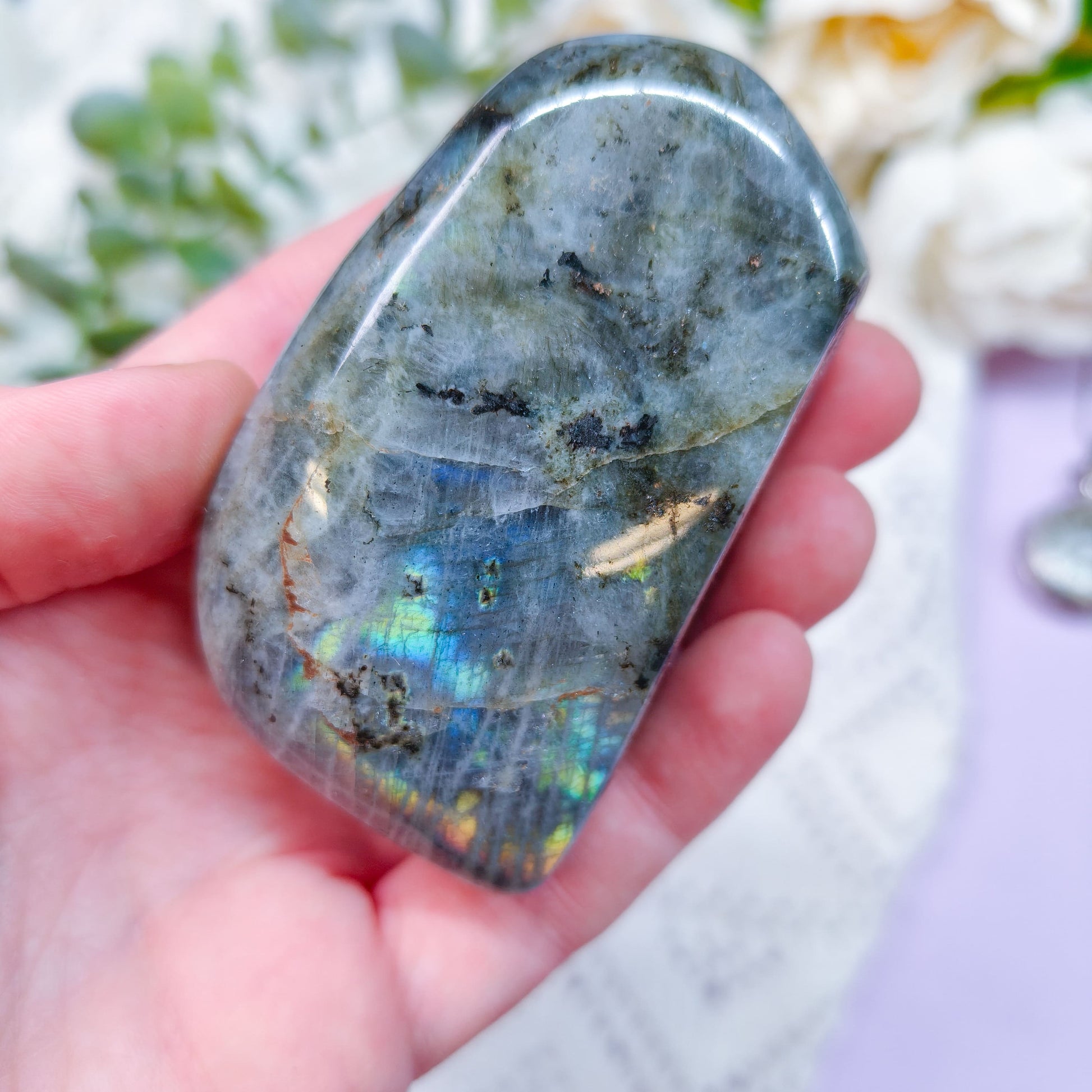 Avainsanat: labradoriitti, spektroliitti, sininen, lila, keltainen, oranssi, harmaa, musta, sateenkaari, aloittelija, keräily, kristalli, voimakivi, energiakivi