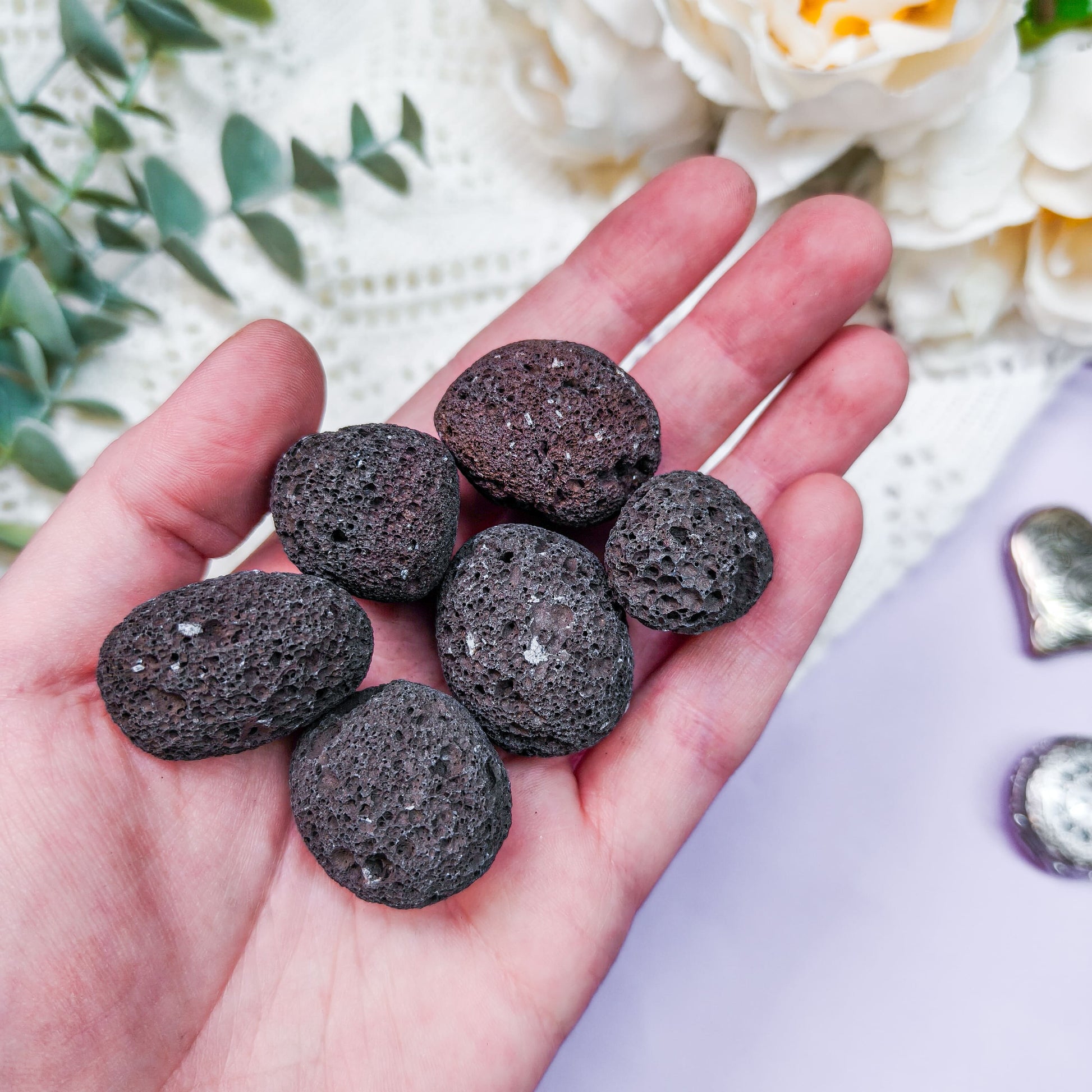 Avainsanat: laavakivi, musta, rumpuhiottu, kristalli, voimakivi, energiakivi