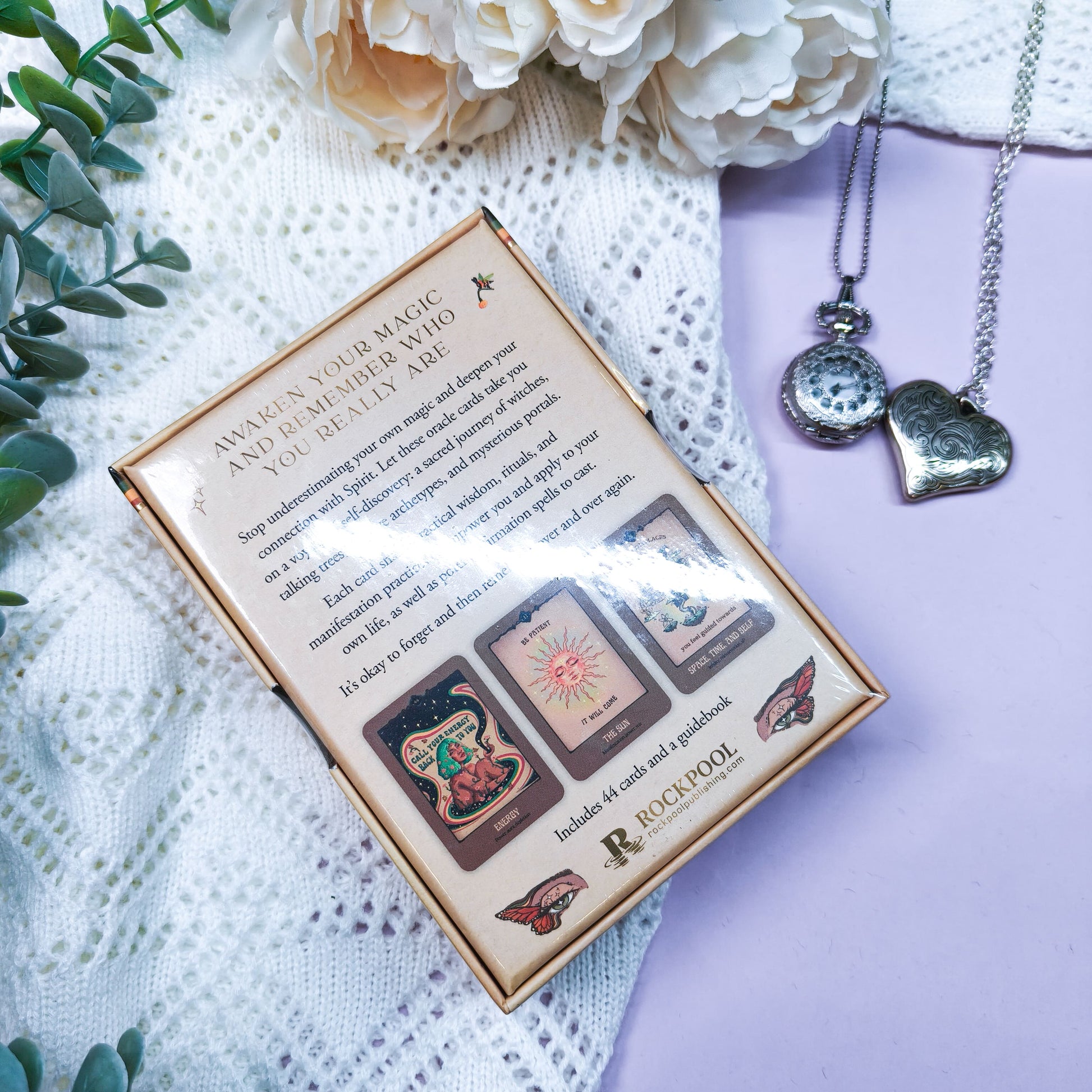Feminiiniset oraakkelikortit, luonut Alexis Rakun. Sisältää 44 korttia ja englanninkielisen ohjekirjan.