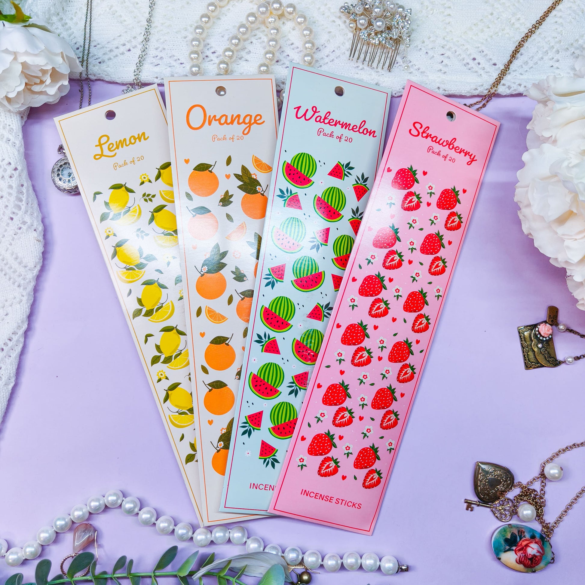 Suitsuketikut iloisissa hedelmäteemaisissa pakkauksissa.