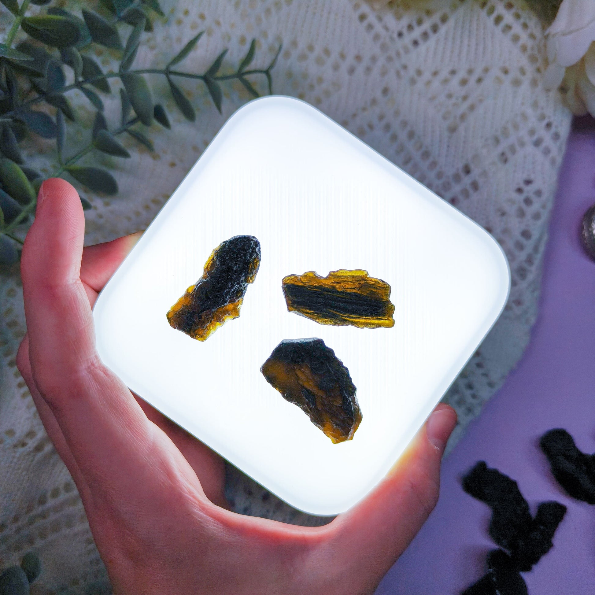 Edullisempi ja aloittelijaystävällisempi vaihtoehto moldaviitille. Huomaathan, että nämä ovat käsitelty mineraaliöljyllä kiiltävämmän pinnan luomiseksi.
